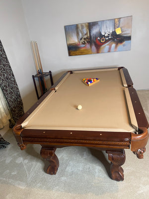 8ft SportsCraft. New cloth New Bumpers. Delivery and Set up included in Atlanta and Surrounding areas. Comes with balls, rack and cue rack.