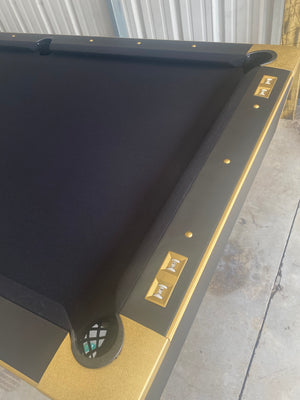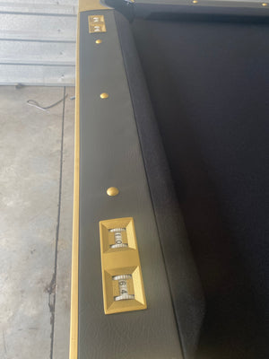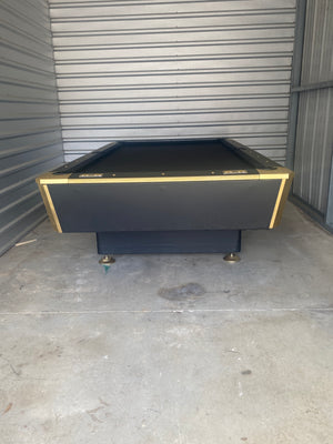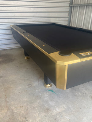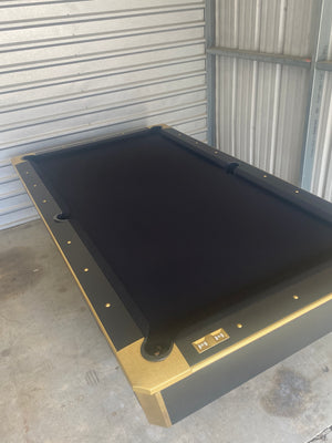 8ft Gandy…Black and Gold Used Custom Pool Table. This table is a 1 slate. This table is incredible when it comes to leveling and accuracy. We offer delivery within the Atlanta Ga and surrounding areas.
