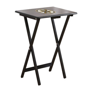 Show your team spirit with the NHL Official Licensed Boston Bruins TV Snack Tray Set. The heavy duty trays and storage rack are made from select hardwoods that are finished with a durable, easy to clean surface so you don't have to worry about stains. Team logos are silkscreened on the top of each tray. When you are done snacking, put the trays back into the storage rack to keep things neat and clean. Each tray measures 26"L x 19"W x 14.5"H. Set of 4 snack trays and storage rack are made to order. Made in China.