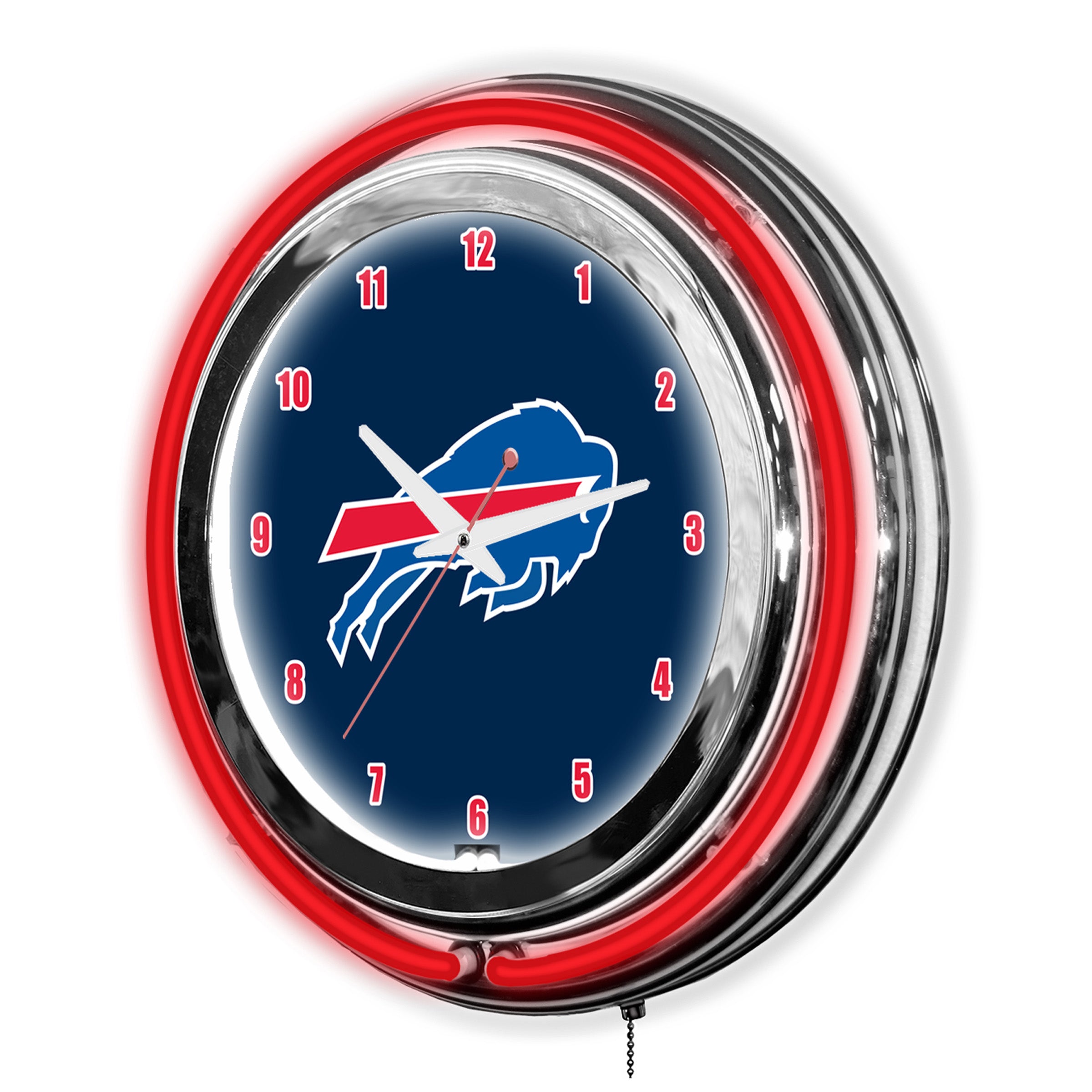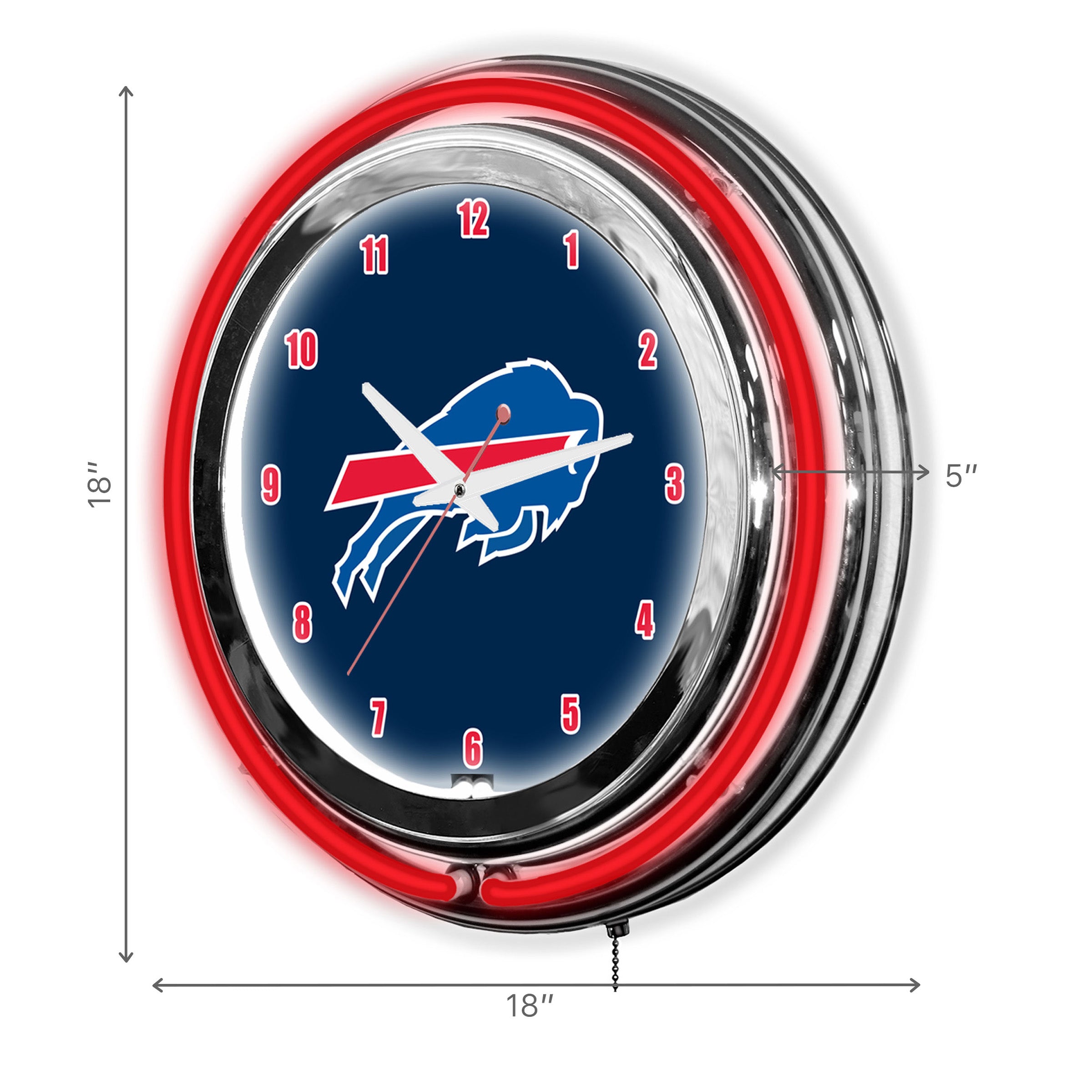 Make Your Fan Room Glow With Your 18" Buffalo Bills Neon Clock. Inner Band Of Neon Is White To Brighten The Face Of The Clock And Outer Band Focuses On Your Favorite Teams Color. Be The Envy Of All All Your Friends When They Come Over To Watch The Big Game