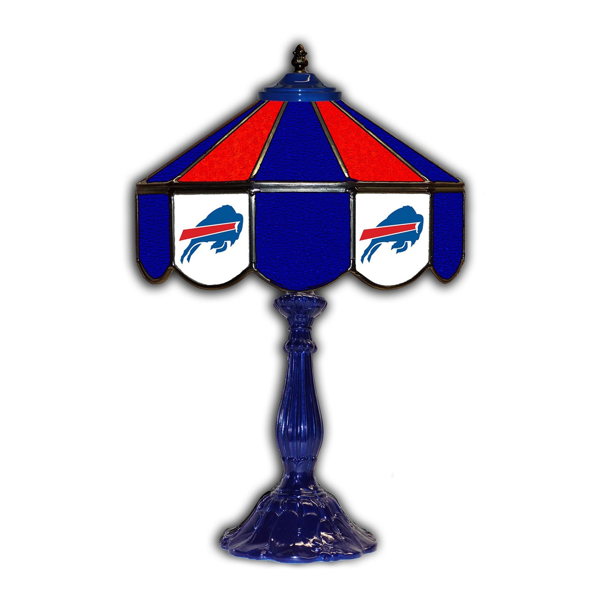 Dress up any room in the house with this officially licensed Tiffany-style 21" Glass Table Lamp. Real hand-cut stained glass with team colors and logos looks great in any game room. Comes with everything you need - just add one 60 watt light bulb (not included). Fully wired with 1 UL. Approved high-quality light socket. Heavy duty solid cast metal base. 6’ of cord with polarized plug. This product is officially licensed by the NFL and is made in the USA.