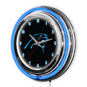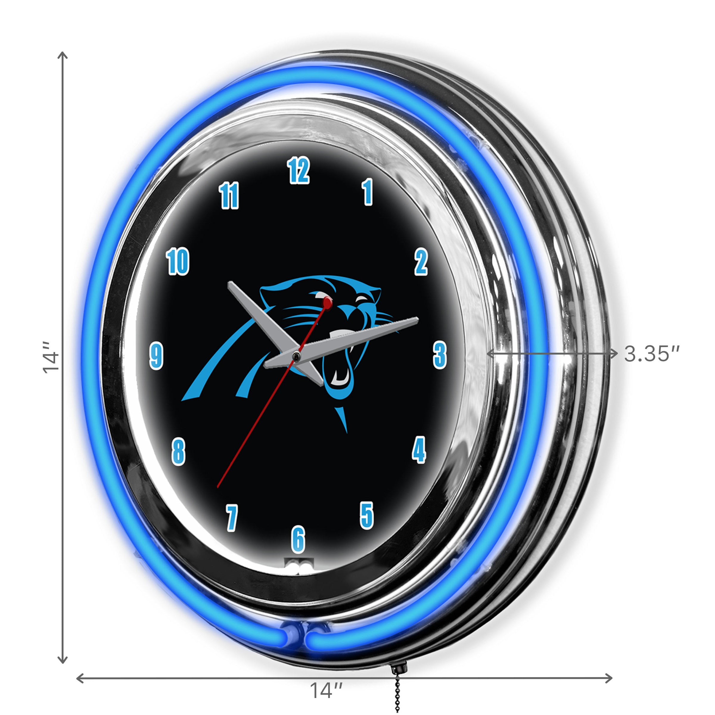 Make Your Fan Room Or Office Glow With Your 14" Carolina Panthers Neon Clock. Inner Band Of Neon Is White To Brighten The Face Of The Clock And Outer Band Focuses On Your Favorite Teams Color. Perfect Gift For That Distinguished Fan!