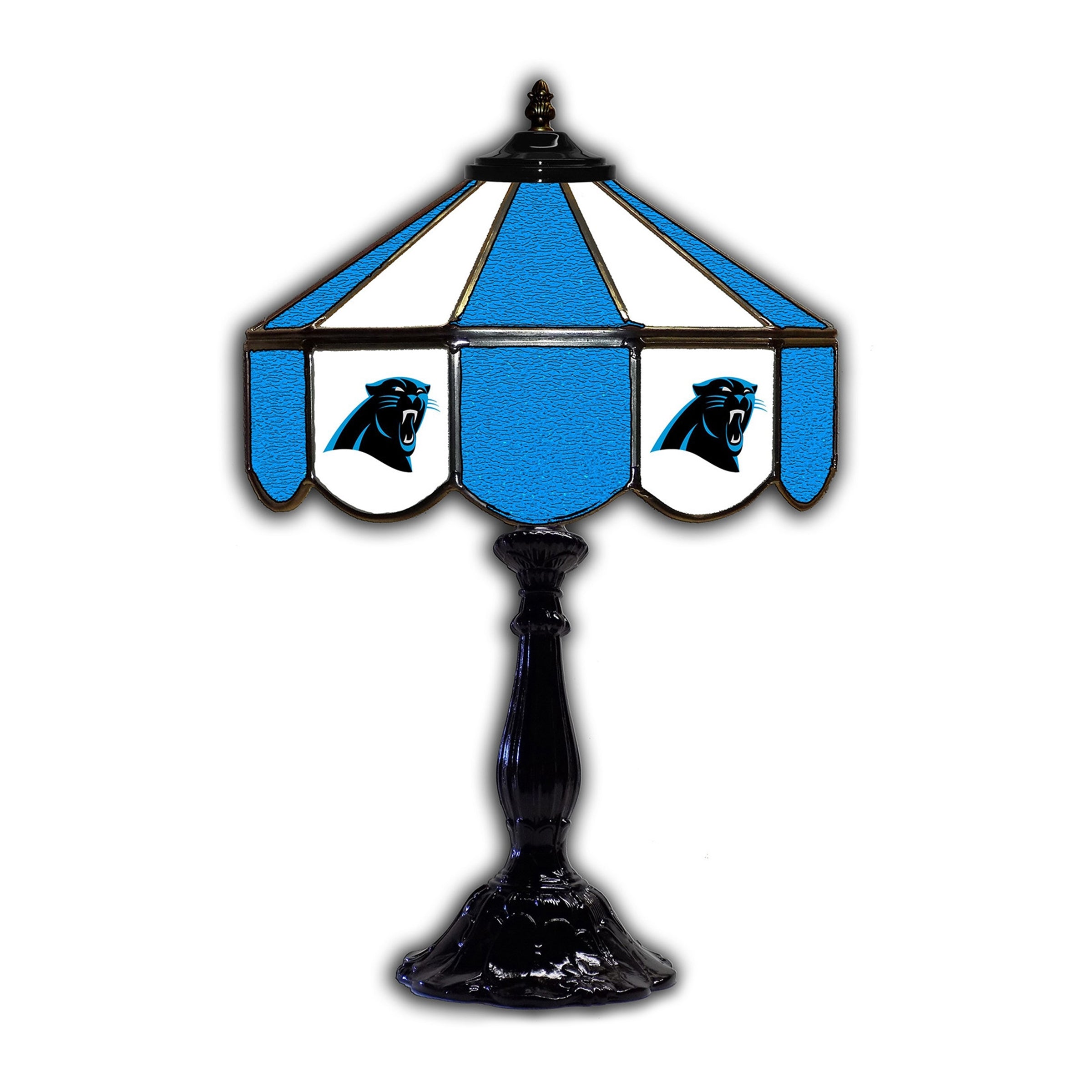 Dress up any room in the house with this officially licensed Tiffany-style 21" Glass Table Lamp. Real hand-cut stained glass with team colors and logos looks great in any game room. Comes with everything you need - just add one 60 watt light bulb (not included). Fully wired with 1 UL. Approved high-quality light socket. Heavy duty solid cast metal base. 6’ of cord with polarized plug. This product is officially licensed by the NFL and is made in the USA.