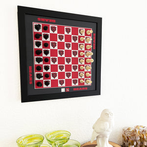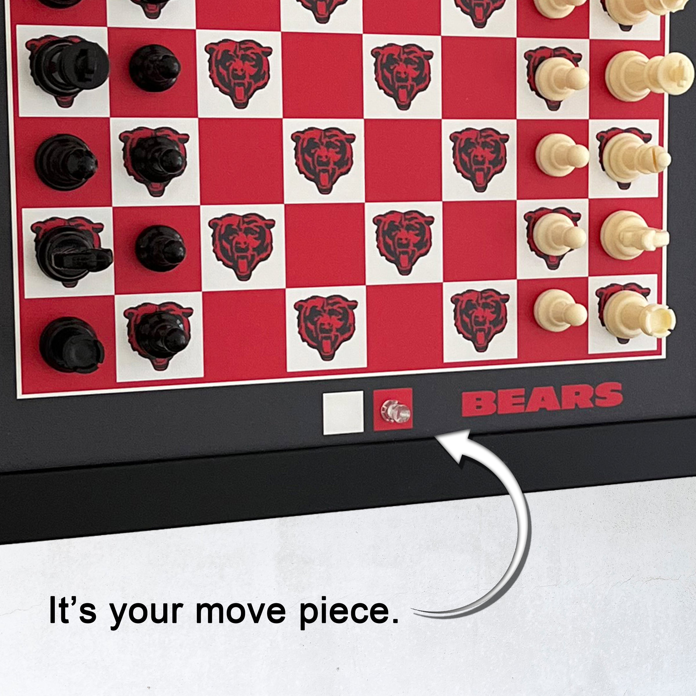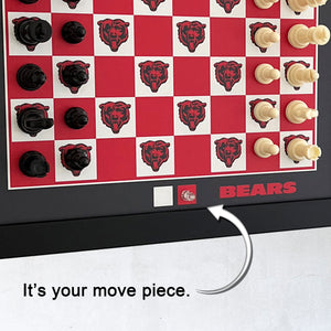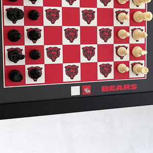Chess, played on a vertical chess board, is a mental workout. The Chicago Bears board has an appealing wall aesthetic with team colors and logo design. Pieces are held in place by strong magnets. The board doubles as functional wall art or can be played on a table. Enjoy playing on your favorite team's board for years!