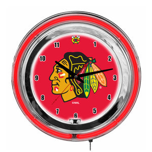 Make Your Fan Room Or Office Glow With Your 14" Chicago Blackhawks Neon Clock. Inner Band Of Neon Is White To Brighten The Face Of The Clock And Outer Band Focuses On Your Favorite Teams Color. Perfect Gift For That Distinguished Fan!