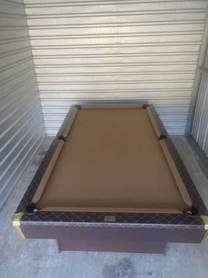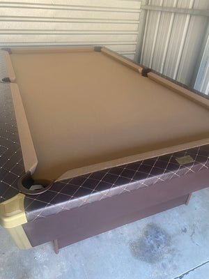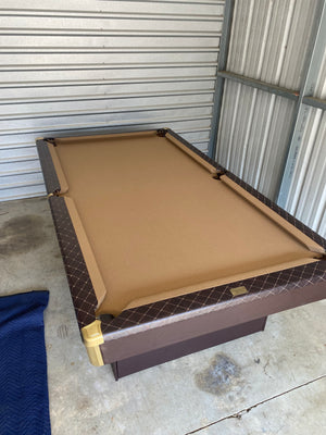 8ft 3 piece slate. Brown leather New felt New bumpers. Custom desigm