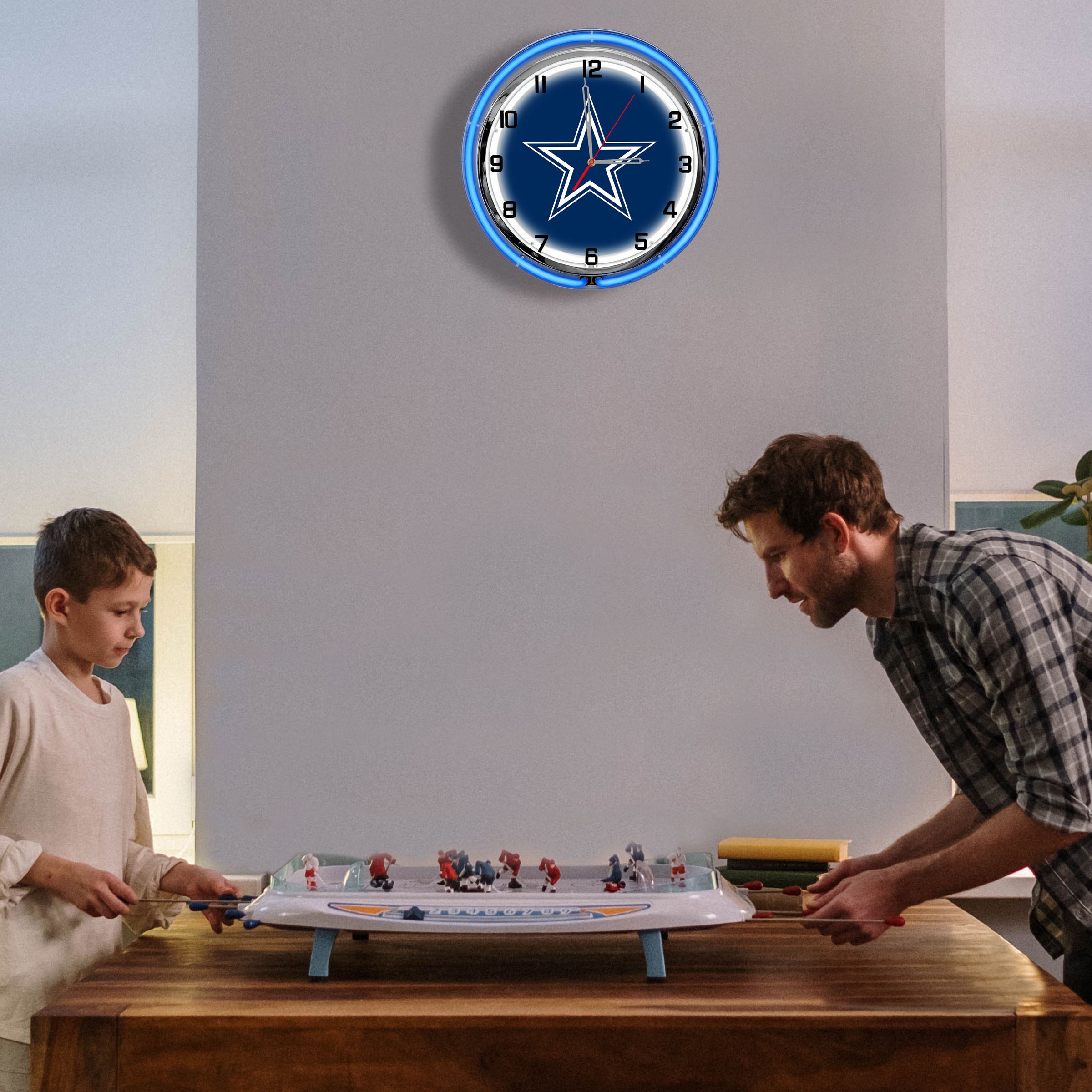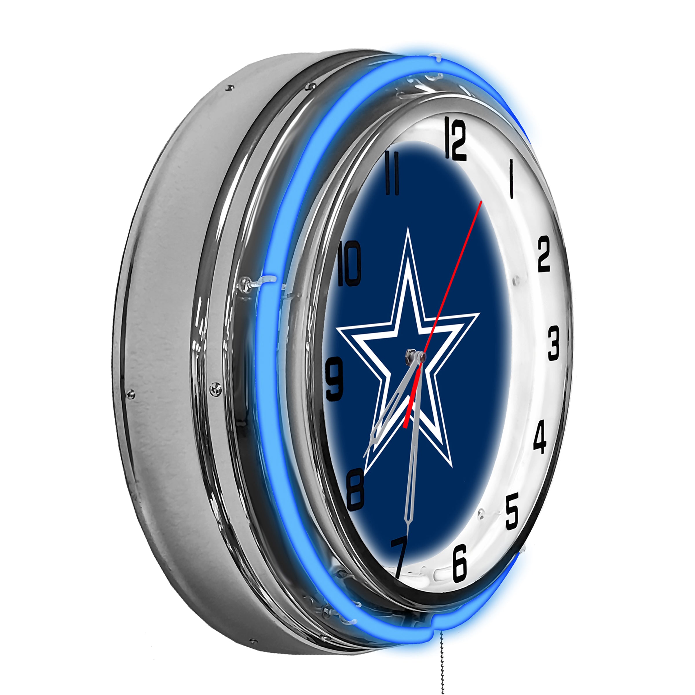 Make Your Fan Room Glow With Your 18" Dallas Cowboys Neon Clock. Inner Band Of Neon Is White To Brighten The Face Of The Clock And Outer Band Focuses On Your Favorite Teams Color. Be The Envy Of All All Your Friends When They Come Over To Watch The Big Game