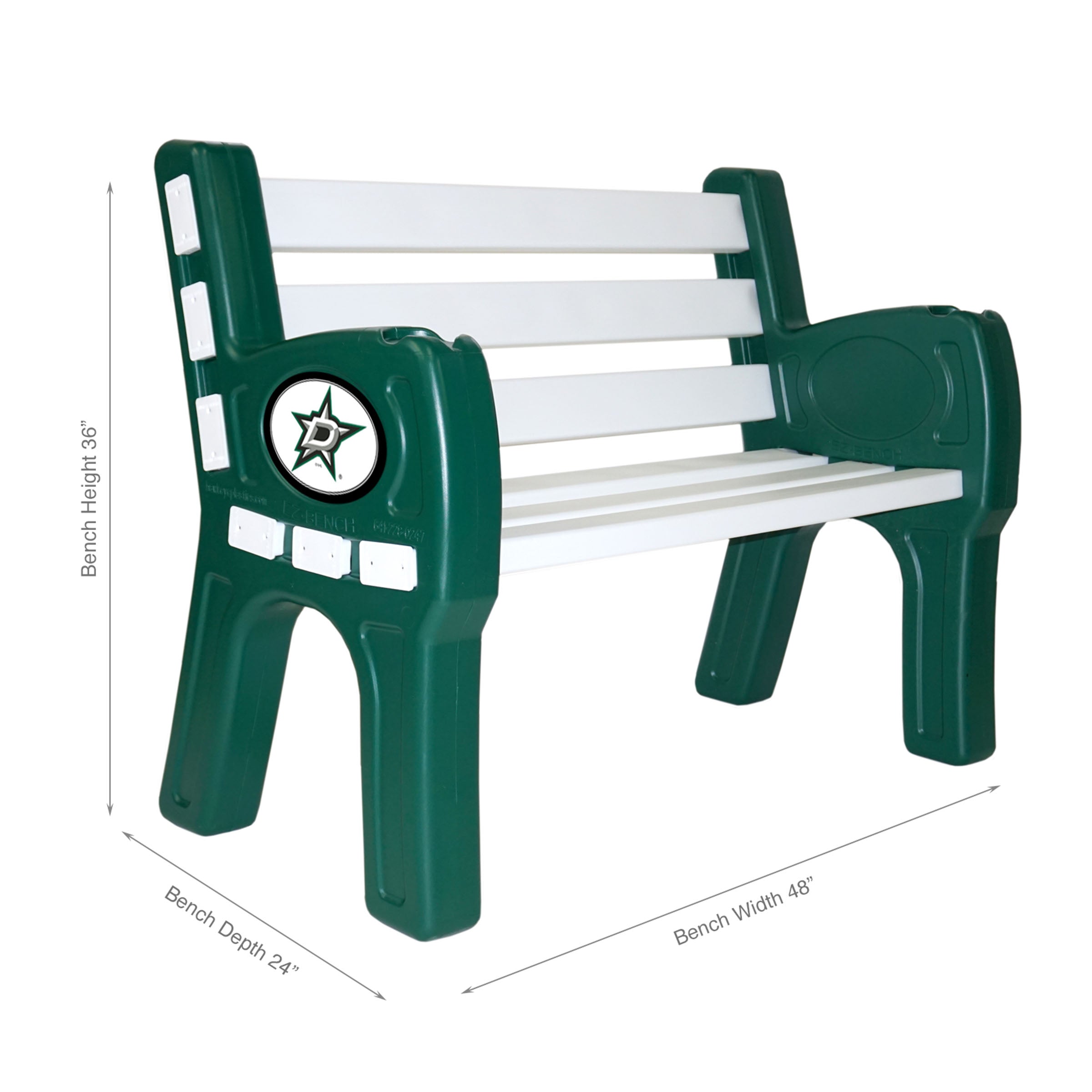 Support Your Favorite Team On Your Patio Or In Your Yard With The Officially Licensed Dallas Stars Outdoor Bench. Backs And Seat Are Constructed Of Pine And Covered With Plastic Sleeves For Extra Durability. The Bench Uses The Primary And Secondary Colors Of Your Favorite Team. Made In The USA And Ships From Iowa. 600 Pound Weight Limit. Assembled Dimensions: 48”L X 24”W X 36”H. Boxed Dimensions: 49”L X 10”W X 25”H; Weighs 47 Pounds. Ships Via Small Parcel. Allow 3 Days To Ship.