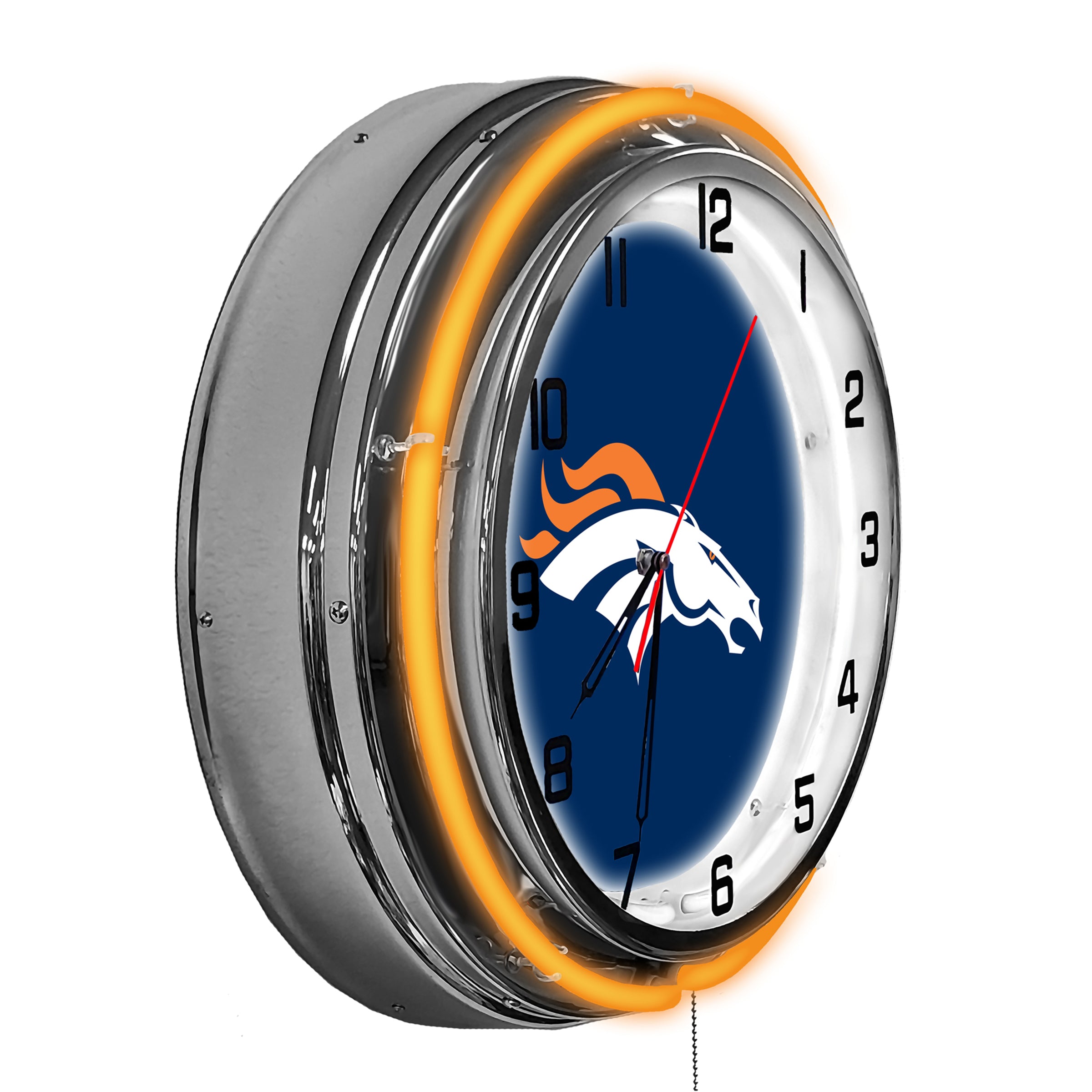 Make Your Fan Room Glow With Your 18" Denver Broncos Neon Clock. Inner Band Of Neon Is White To Brighten The Face Of The Clock And Outer Band Focuses On Your Favorite Teams Color. Be The Envy Of All All Your Friends When They Come Over To Watch The Big Game