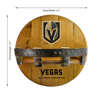 Enjoy your one of a kind Oak Kentucky Whiskey Barrel Bar Shelf. Made from authentic reclaimed oak whiskey barrel head with the original barrel ring attached and barrel stave supports and would be a nice additition to any game room or place where fans meet for the game. Matches up nicely with the Oak Barrel Clock and Side Table.