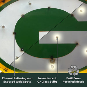 Green Bay Packers Logo Lighted Recycled Metal Sign