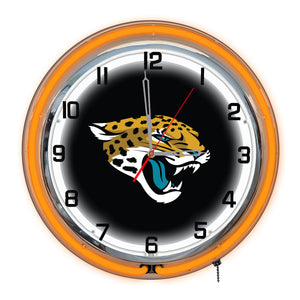 Make Your Fan Room Glow With Your 18" Jacksonville Jaguars Neon Clock. Inner Band Of Neon Is White To Brighten The Face Of The Clock And Outer Band Focuses On Your Favorite Teams Color. Be The Envy Of All All Your Friends When They Come Over To Watch The Big Game