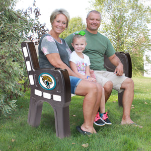 Support Your Favorite NFL Team On Your Patio Or In Your Yard With The NFL Officially Licensed Jacksonville Jaguars Outdoor Bench. Backs And Seat Are Constructed Of Pine And Covered With Plastic Sleeves For Extra Durability. The Bench Uses The Primary And Secondary Colors Of Your Favorite Team. Made In The USA And Ships From Iowa. 600 Pound Weight Limit. Assembled Dimensions: 48”L X 24”W X 36”H. Boxed Dimensions: 49”L X 10”W X 25”H; Weighs 47 Pounds. Ships Via Small Parcel. Allow 3 Days To Ship.