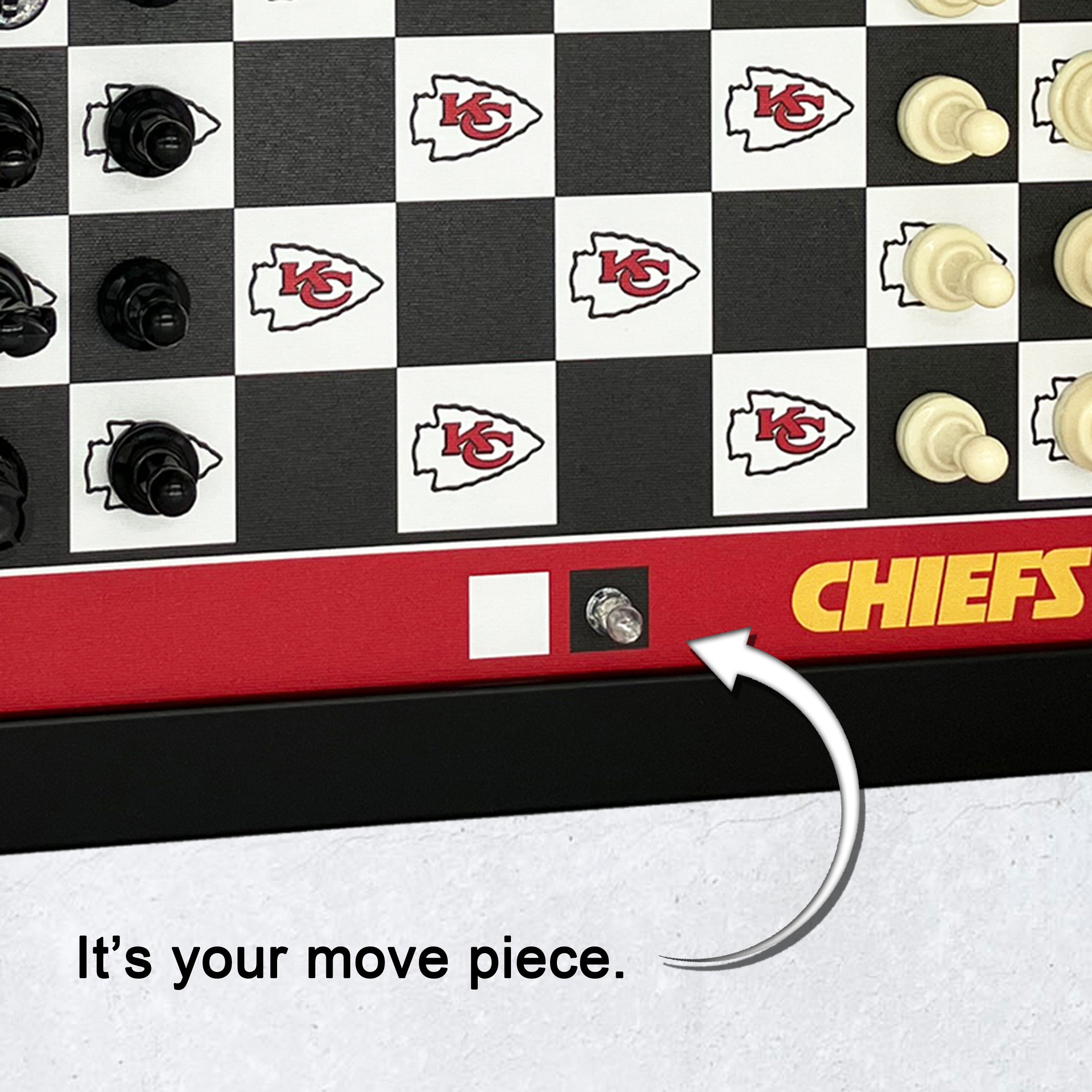 Chess, played on a vertical chess board, is a mental workout. The Kansas City Chiefs board has an appealing wall aesthetic with team colors and logo design. Pieces are held in place by strong magnets. The board doubles as functional wall art or can be played on a table. Enjoy playing on your favorite team's board for years!
