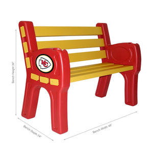 Support Your Favorite NFL Team On Your Patio Or In Your Yard With The NFL Officially Licensed Kansas City Chiefs Outdoor Bench. Backs And Seat Are Constructed Of Pine And Covered With Plastic Sleeves For Extra Durability. The Bench Uses The Primary And Secondary Colors Of Your Favorite Team. Made In The USA And Ships From Iowa. 600 Pound Weight Limit. Assembled Dimensions: 48”L X 24”W X 36”H. Boxed Dimensions: 49”L X 10”W X 25”H; Weighs 47 Pounds. Ships Via Small Parcel. Allow 3 Days To Ship.