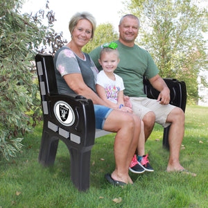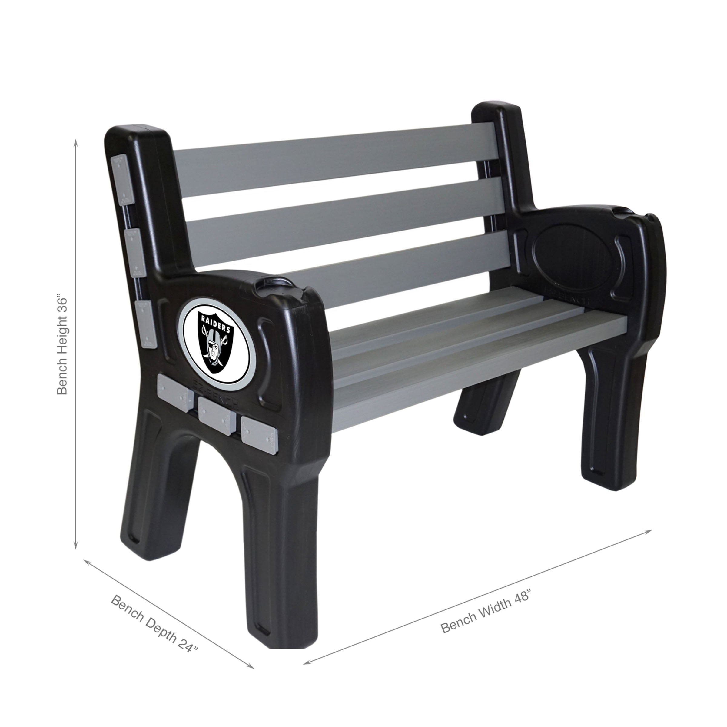 Support Your Favorite NFL Team On Your Patio Or In Your Yard With The NFL Officially Licensed Las Vegas Raiders Outdoor Bench. Backs And Seat Are Constructed Of Pine And Covered With Plastic Sleeves For Extra Durability. The Bench Uses The Primary And Secondary Colors Of Your Favorite Team. Made In The USA And Ships From Iowa. 600 Pound Weight Limit. Assembled Dimensions: 48”L X 24”W X 36”H. Boxed Dimensions: 49”L X 10”W X 25”H; Weighs 47 Pounds. Ships Via Small Parcel. Allow 3 Days To Ship.