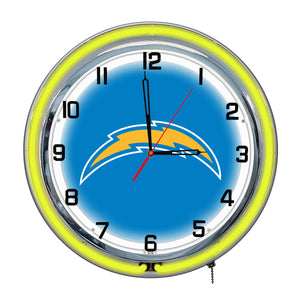 Make Your Fan Room Glow With Your 18" Los Angeles Chargers Neon Clock. Inner Band Of Neon Is White To Brighten The Face Of The Clock And Outer Band Focuses On Your Favorite Teams Color. Be The Envy Of All All Your Friends When They Come Over To Watch The Big Game