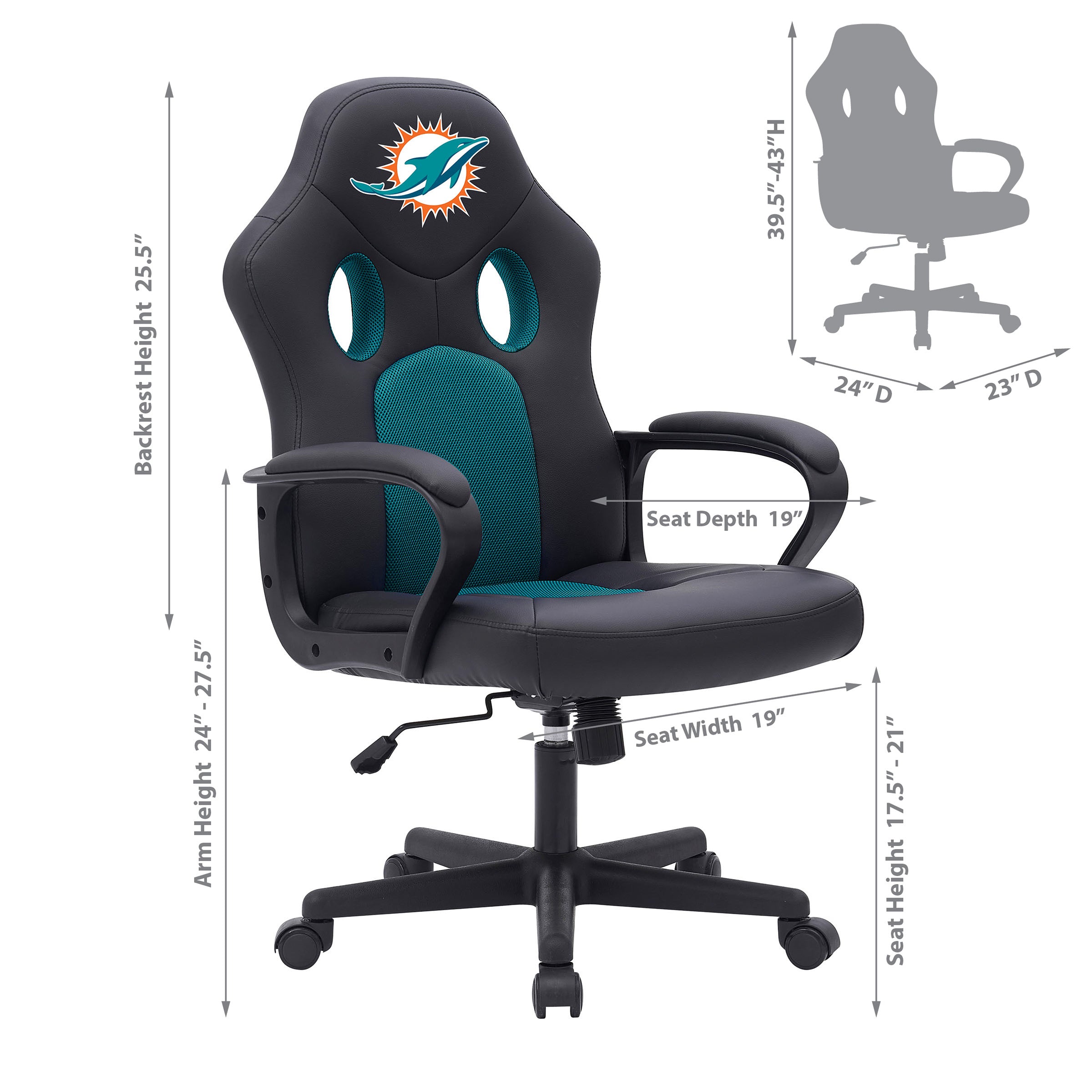 The Miami Dolphins Vision Game Chair is a fantastic addition for any young fan! It features team color jersey-like Mesh that not only adds a sporty touch but also ensures breathability, keeping the user comfortable during long gaming sessions or study hours. Adjustable seat height feature allows users to customize the chair's height to their preference, ensuring ergonomic comfort. Tilt mechanism lets users recline slightly, providing a relaxed posture while gaming or working. 360-Degree Swivel feature provides easy rotation and allows users to move freely without getting up from the chair. The sharp modern design is sleek and contemporary, making it a stylish addition to any room.