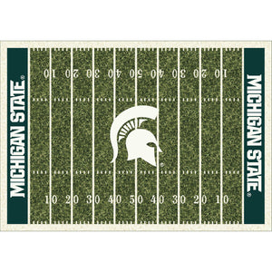 Show Your Team Spirit With This 8 X 11' Officially Licensed Michigan State Area Rug, Styled To Resemble A Football Field! Made With Milliken WearOn®Nylon Fiber, This Rug Is Fade Resistant, Durable And Easy To Care For. Endura-Loc™ High Performance Backing Helps Assure The Rug Always Lies Flat And Serged Edges Give Your Rug The Quality That Your Home And Team Deserve. The Rug Has A 2 Year Warranty That Protects Against Manufacturer's Defects. Product Made In The USA.