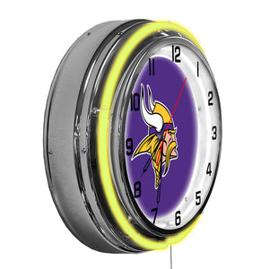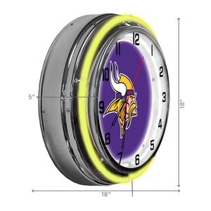 Make Your Fan Room Glow With Your 18" Minnesota Vikings Neon Clock. Inner Band Of Neon Is White To Brighten The Face Of The Clock And Outer Band Focuses On Your Favorite Teams Color. Be The Envy Of All All Your Friends When They Come Over To Watch The Big Game