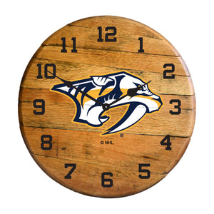 It's Game Time With This Offically Licensed Nashville Predators Custom Made Oak Barrel Clock From Imperial! Made From An Authentic Kentucky Oak Charred Whiskey Barrel Top, This Rustic-Style Clock Is One Of A Kind And Looks Great In Your Living Room Or Fan Cave. The Team Logo Is Applied By Injecting Uv Resistant Ink Into The Oak And Then Sealing. The Clock Measures 21 Inches In Diameter And Features A Quartz Clock Mechanism. Aa Battery Not Included. This Product Is Officially Licensed By The Nhl And Is Made In The Usa.