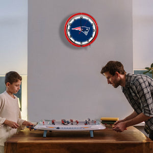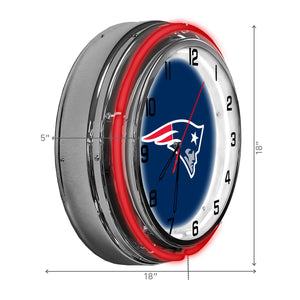 Make Your Fan Room Glow With Your 18" New England Patriots Neon Clock. Inner Band Of Neon Is White To Brighten The Face Of The Clock And Outer Band Focuses On Your Favorite Teams Color. Be The Envy Of All All Your Friends When They Come Over To Watch The Big Game