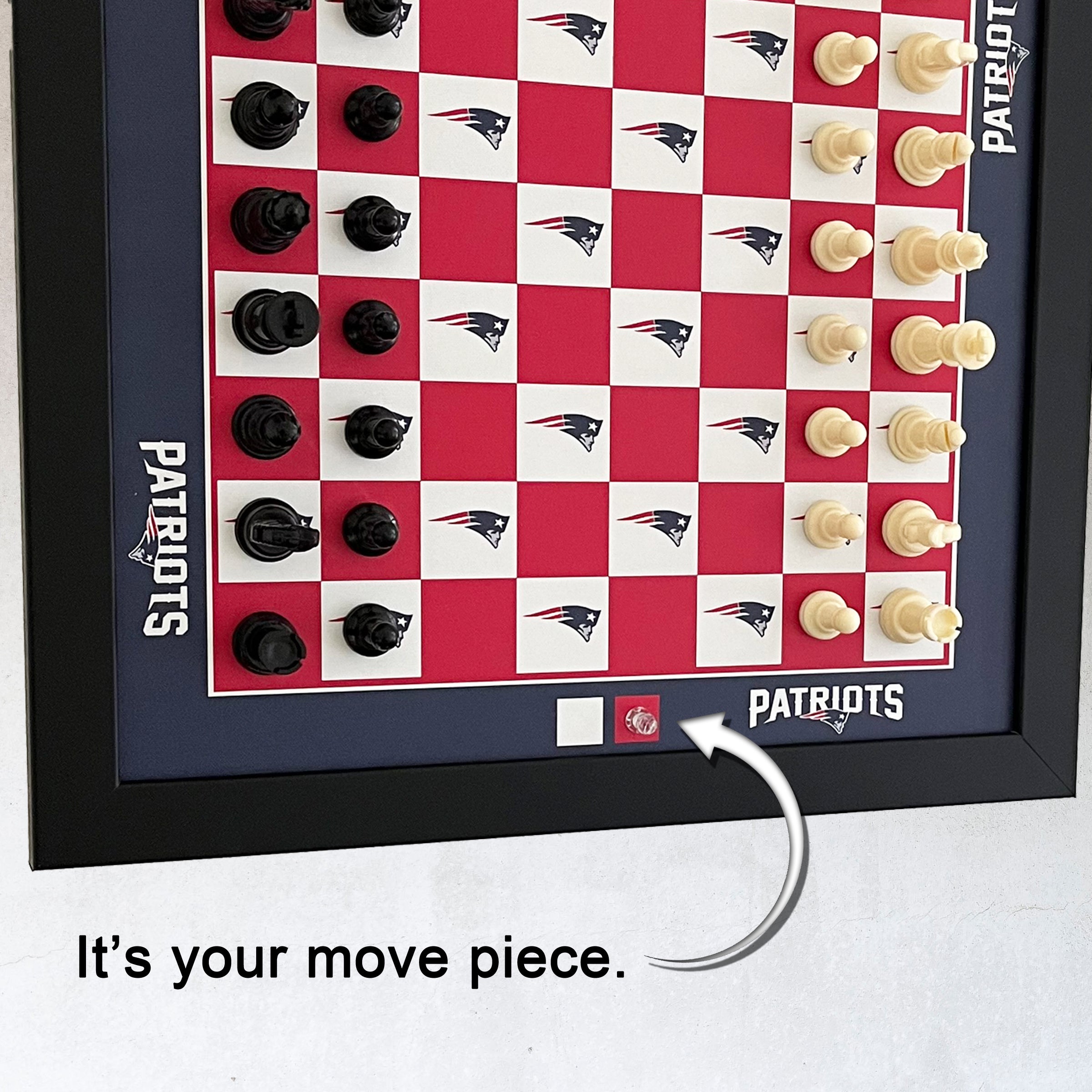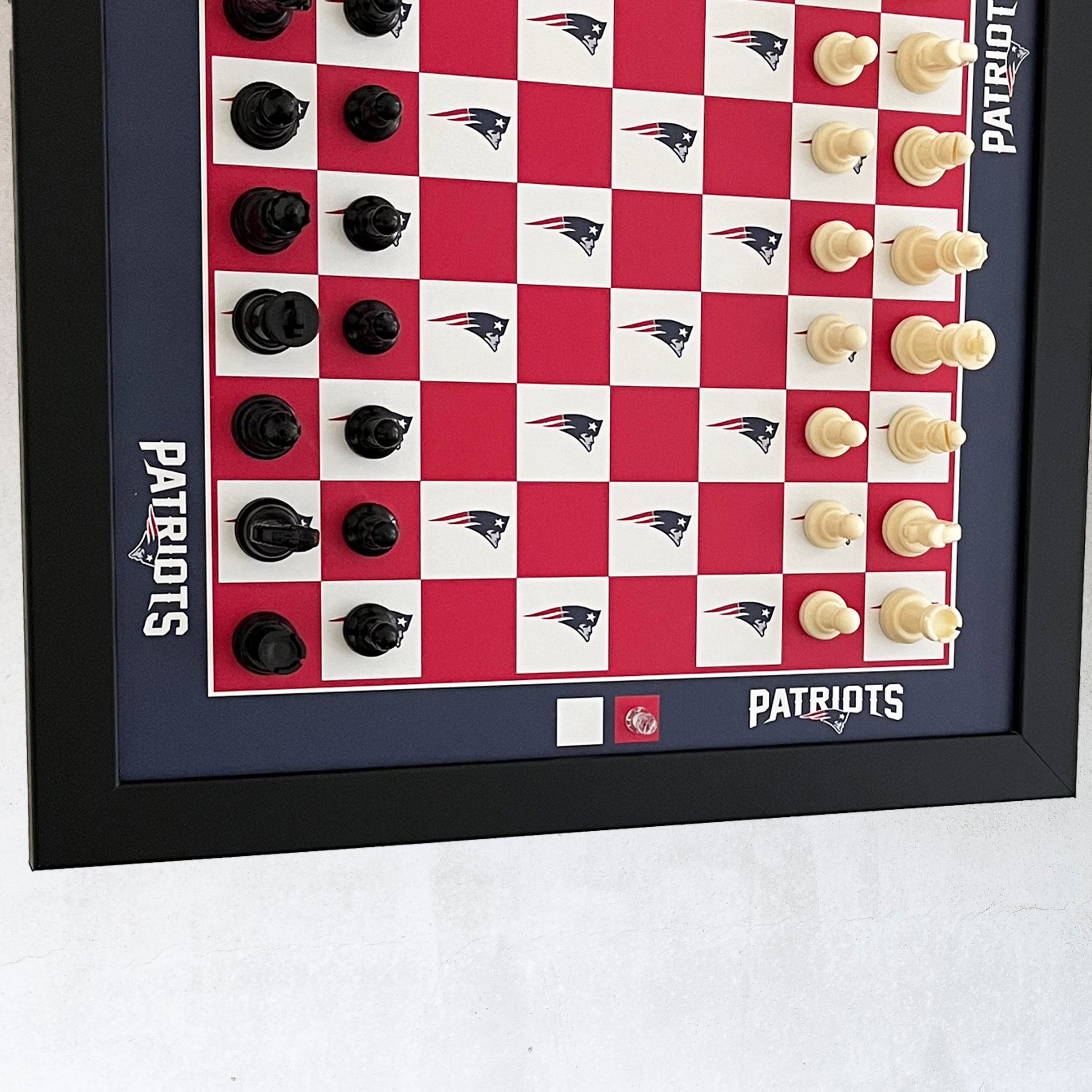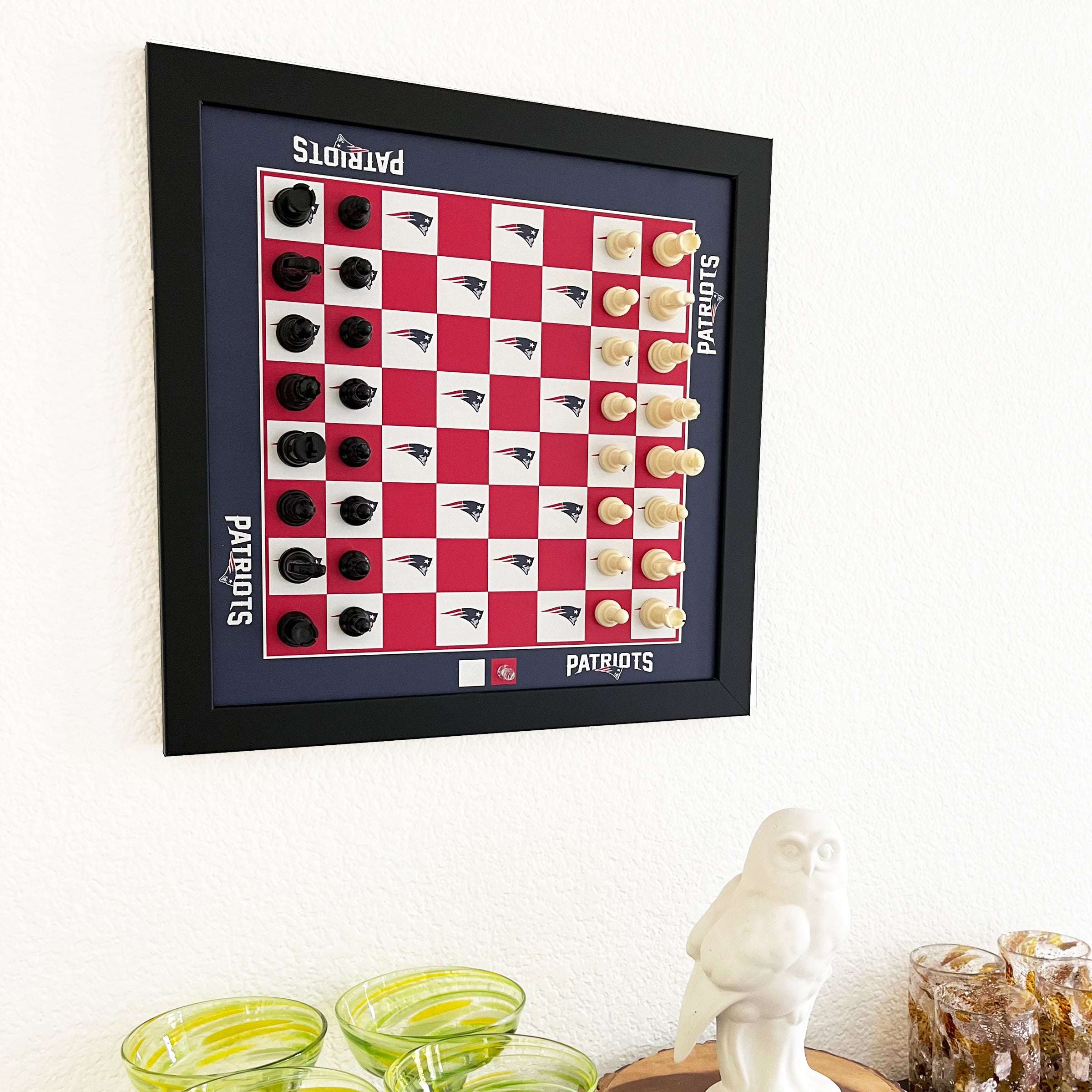 Chess, played on a vertical chess board, is a mental workout. The New England Patriots board has an appealing wall aesthetic with team colors and logo design. Pieces are held in place by strong magnets. The board doubles as functional wall art or can be played on a table. Enjoy playing on your favorite team's board for years!