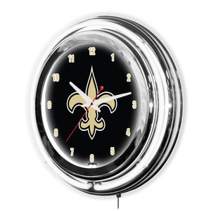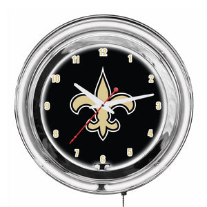 Make Your Fan Room Or Office Glow With Your 14" New Orleans Saints Neon Clock. Inner Band Of Neon Is White To Brighten The Face Of The Clock And Outer Band Focuses On Your Favorite Teams Color. Perfect Gift For That Distinguished Fan!