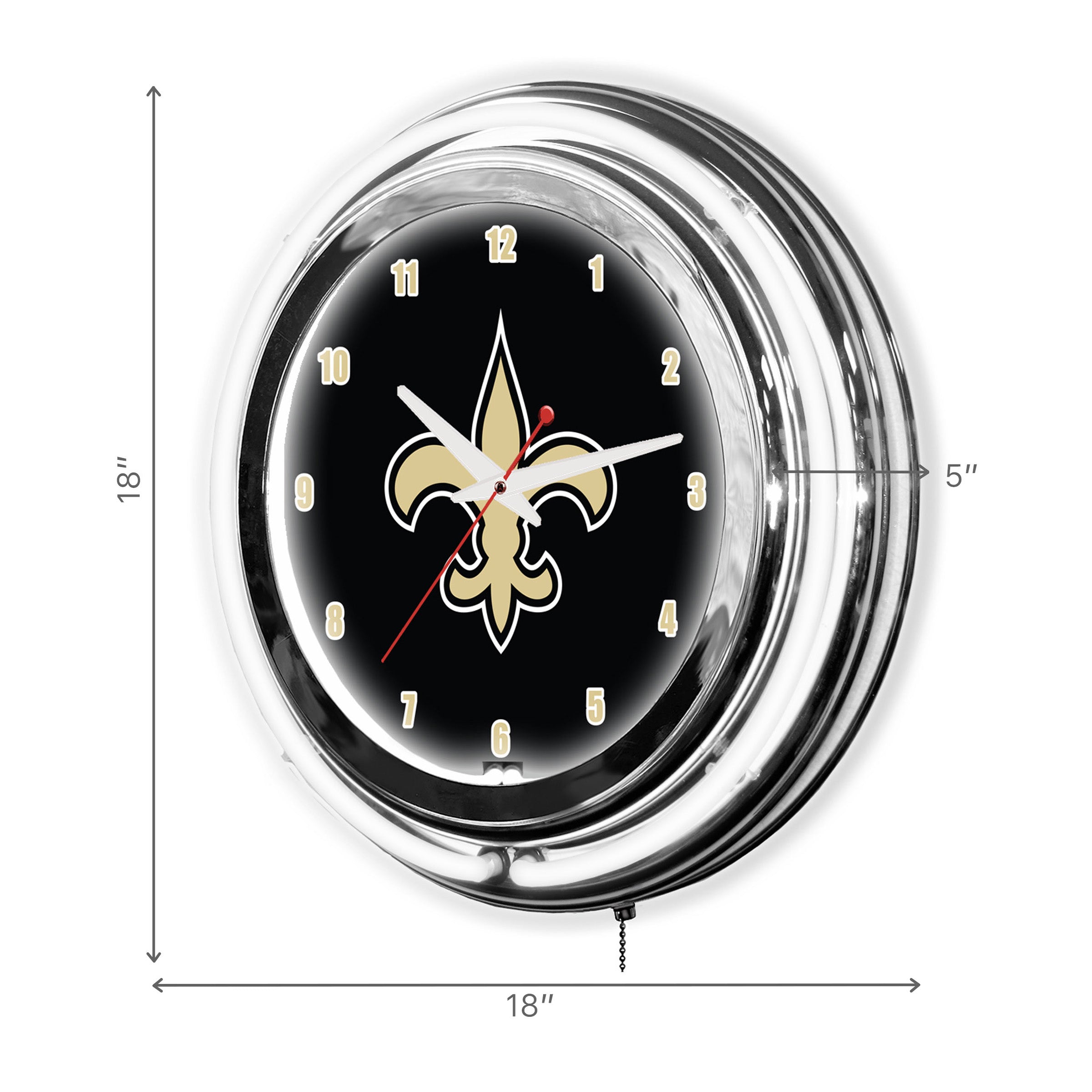 Make Your Fan Room Glow With Your 18" New Orleans Saints Neon Clock. Inner Band Of Neon Is White To Brighten The Face Of The Clock And Outer Band Focuses On Your Favorite Teams Color. Be The Envy Of All All Your Friends When They Come Over To Watch The Big Game