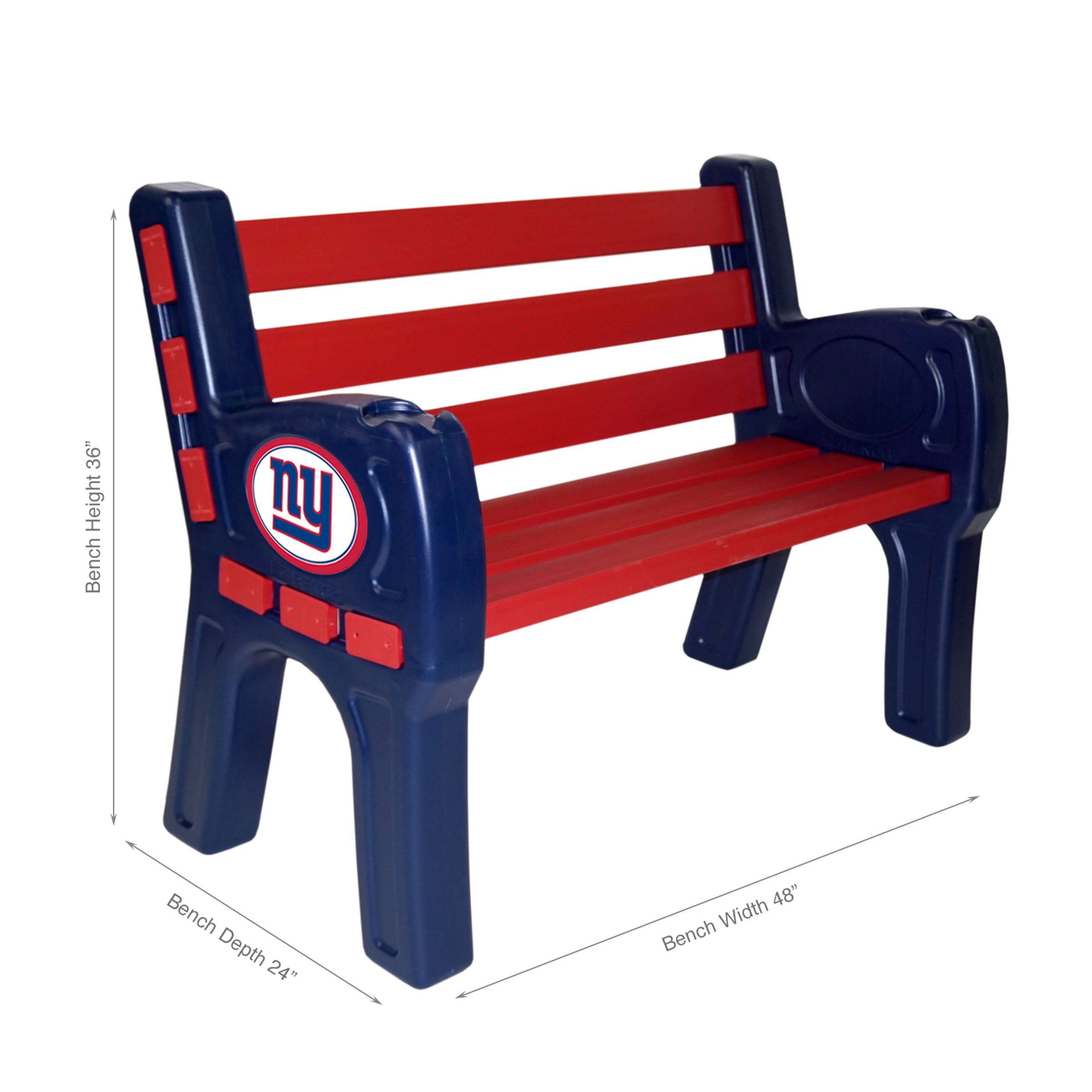 Support Your Favorite NFL Team On Your Patio Or In Your Yard With The NFL Officially Licensed New York Giants Outdoor Bench. Backs And Seat Are Constructed Of Pine And Covered With Plastic Sleeves For Extra Durability. The Bench Uses The Primary And Secondary Colors Of Your Favorite Team. Made In The USA And Ships From Iowa. 600 Pound Weight Limit. Assembled Dimensions: 48”L X 24”W X 36”H. Boxed Dimensions: 49”L X 10”W X 25”H; Weighs 47 Pounds. Ships Via Small Parcel. Allow 3 Days To Ship.