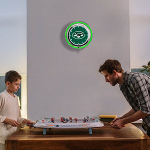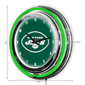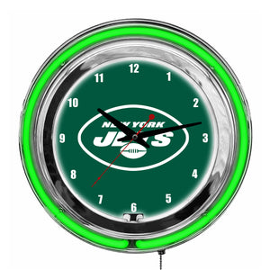 Make Your Fan Room Or Office Glow With Your 14" New York Jets Neon Clock. Inner Band Of Neon Is White To Brighten The Face Of The Clock And Outer Band Focuses On Your Favorite Teams Color. Perfect Gift For That Distinguished Fan!