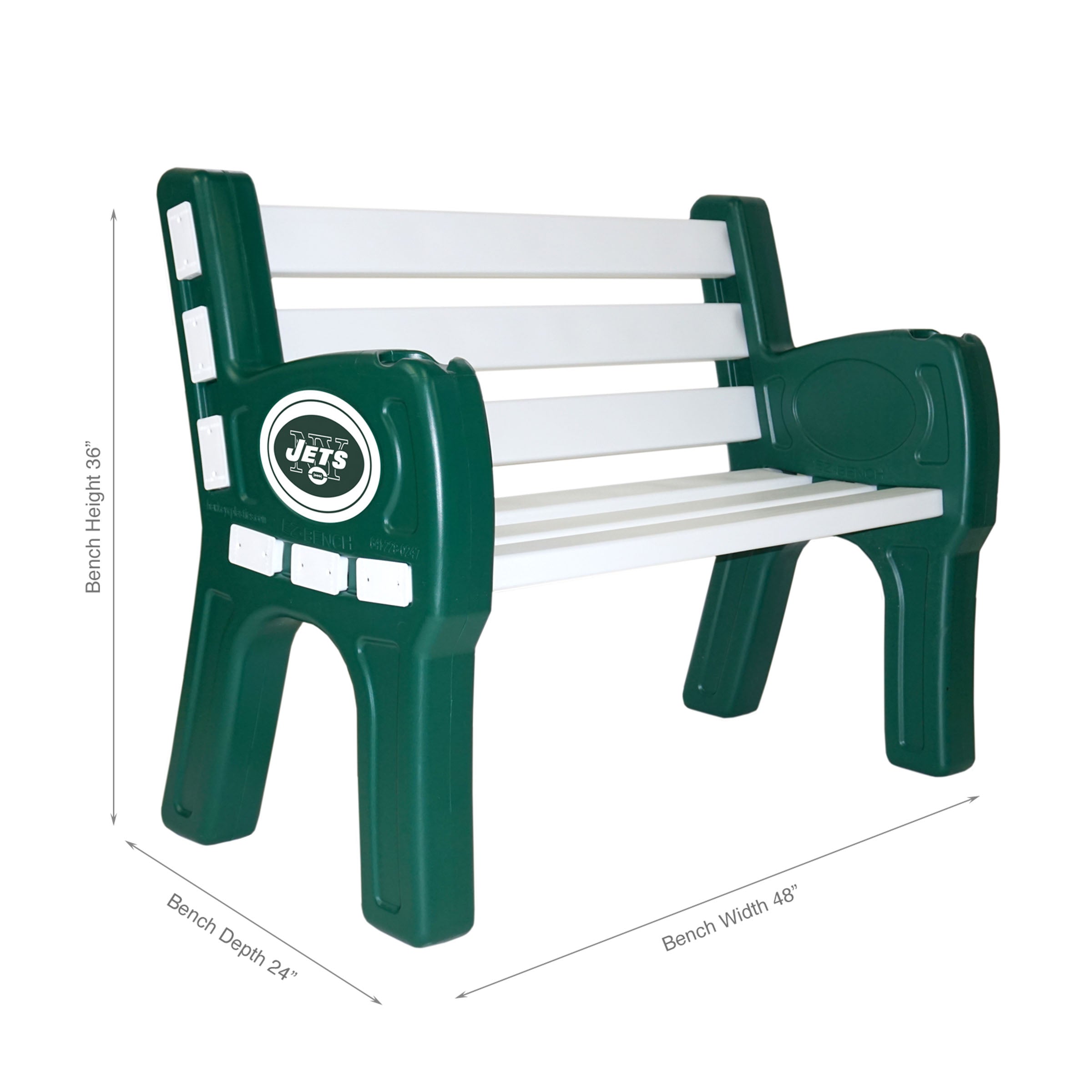Support Your Favorite NFL Team On Your Patio Or In Your Yard With The NFL Officially Licensed New York Jets Outdoor Bench. Backs And Seat Are Constructed Of Pine And Covered With Plastic Sleeves For Extra Durability. The Bench Uses The Primary And Secondary Colors Of Your Favorite Team. Made In The USA And Ships From Iowa. 600 Pound Weight Limit. Assembled Dimensions: 48”L X 24”W X 36”H. Boxed Dimensions: 49”L X 10”W X 25”H; Weighs 47 Pounds. Ships Via Small Parcel. Allow 3 Days To Ship.