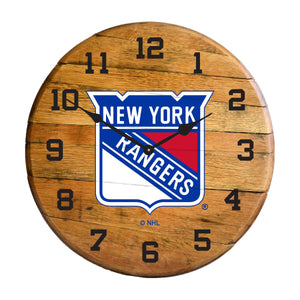 New York Rangers Oak Barrel Clock