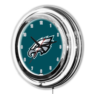 Make Your Fan Room Or Office Glow With Your 14" Philadelphia Eagles Neon Clock. Inner Band Of Neon Is White To Brighten The Face Of The Clock And Outer Band Focuses On Your Favorite Teams Color. Perfect Gift For That Distinguished Fan!