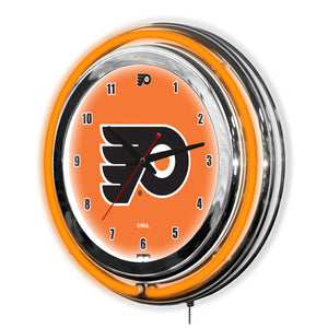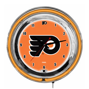 Make Your Fan Room Or Office Glow With Your 14" Philadelphia Flyers Neon Clock. Inner Band Of Neon Is White To Brighten The Face Of The Clock And Outer Band Focuses On Your Favorite Teams Color. Perfect Gift For That Distinguished Fan!