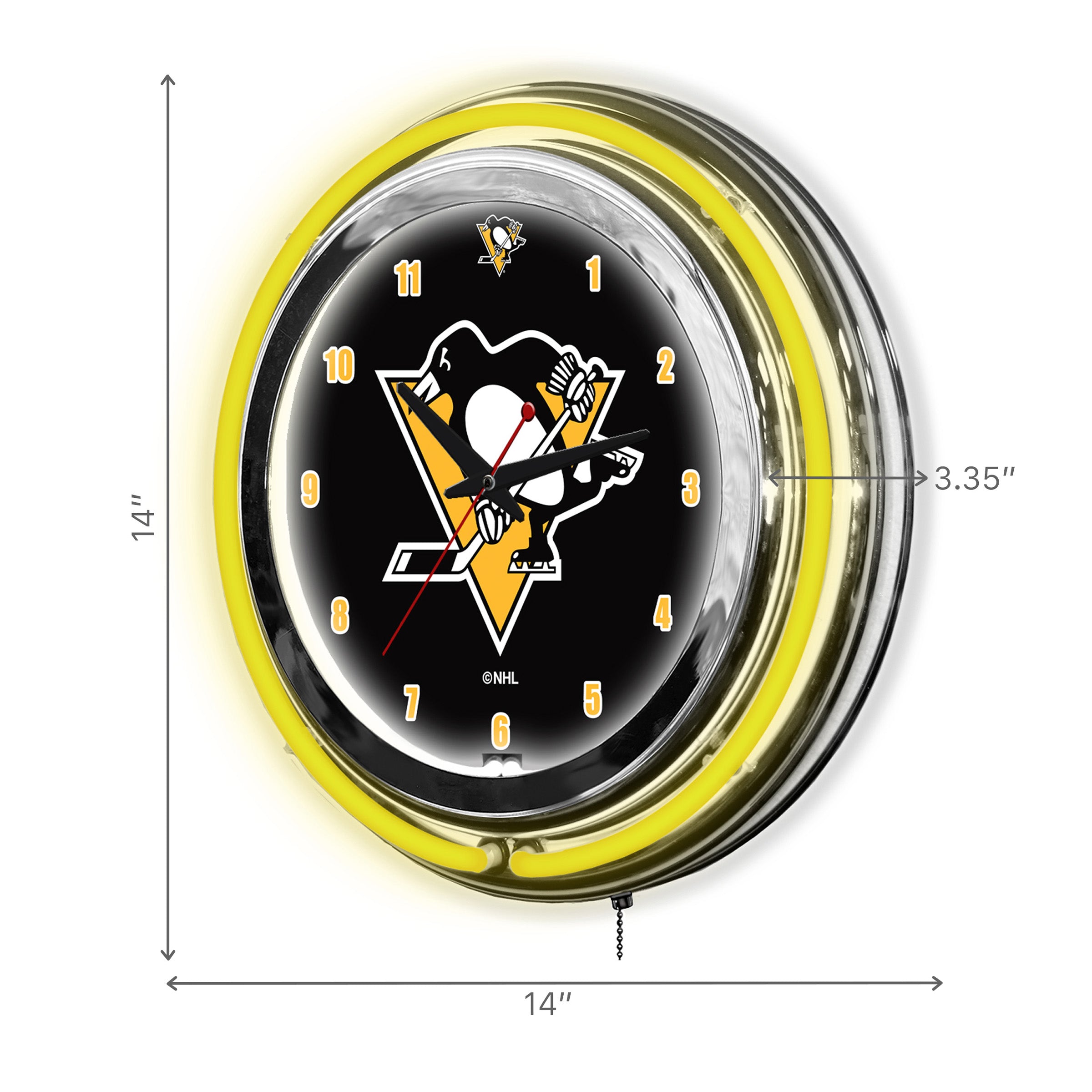 Make Your Fan Room Or Office Glow With Your 14" Pittsburgh Penguins Neon Clock. Inner Band Of Neon Is White To Brighten The Face Of The Clock And Outer Band Focuses On Your Favorite Teams Color. Perfect Gift For That Distinguished Fan!
