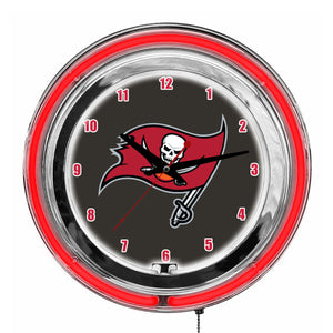 Make Your Fan Room Or Office Glow With Your 14" Tampa Bay Buccaneers Neon Clock. Inner Band Of Neon Is White To Brighten The Face Of The Clock And Outer Band Focuses On Your Favorite Teams Color. Perfect Gift For That Distinguished Fan!